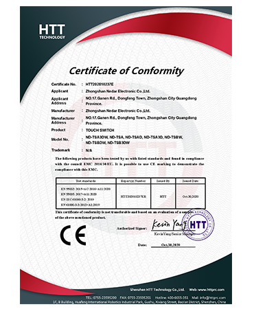 • 燈鏡開關CE證書