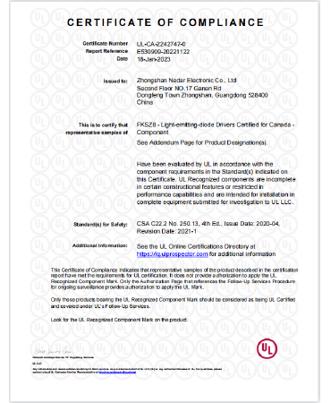 • 防水開關電源FCC證書