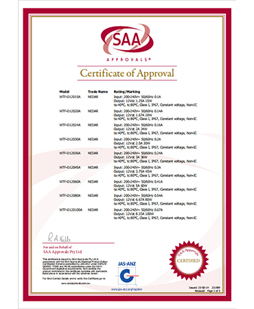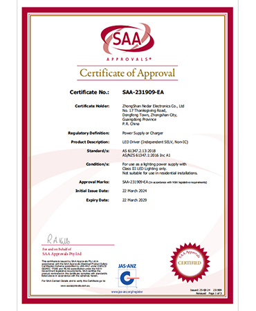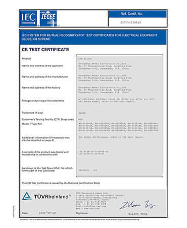• 櫥柜燈電源CE證書